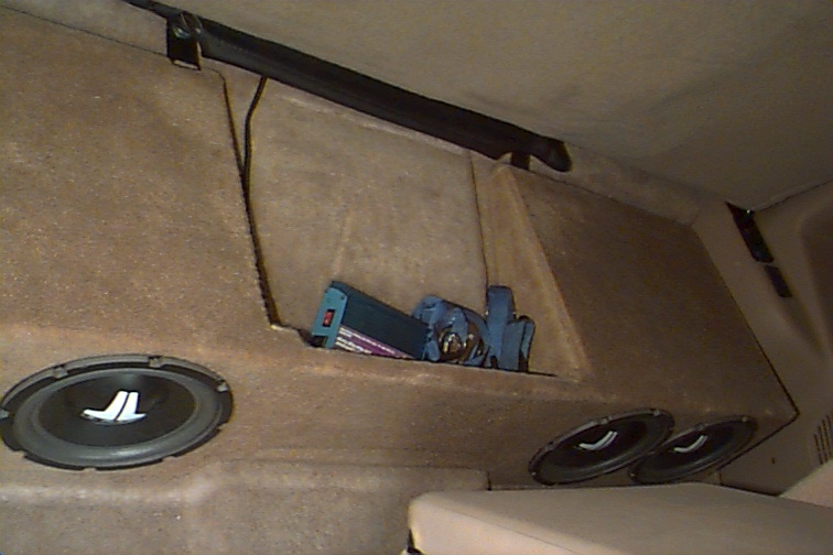 I bought this 1997 Dodge RAM 1500 SLT Club Cab Sport truck from Cal Worthington Dodge in Carlsbad, CA on Dec 1st 1996. In Janurary of 1997 I had Frtiz's Auto Sound & Security custom make a sub-woofer and squeeze the follwoing into the truck while still keeping the factory look as much as possible.